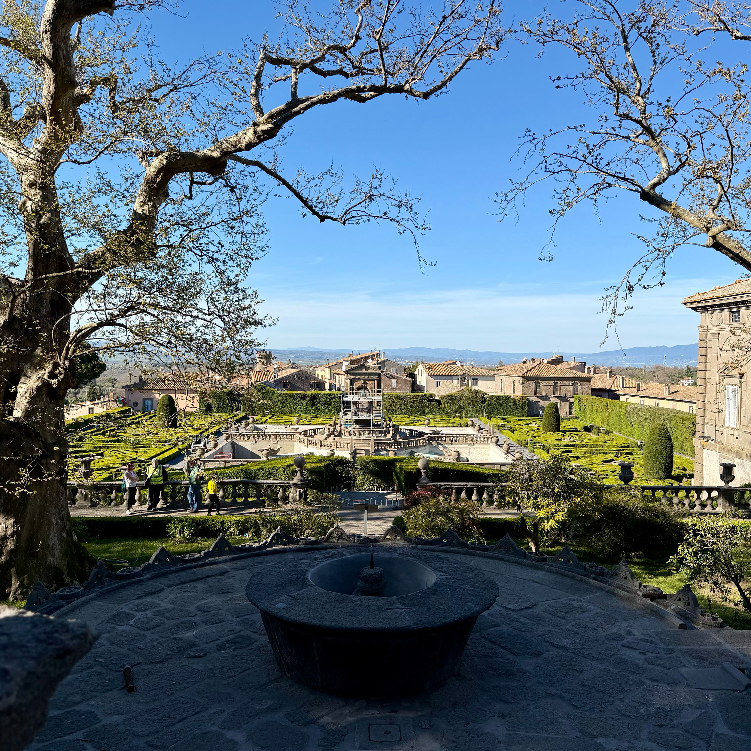 Villa Lante non è una villa. O meglio: non nel senso che ci si aspetta. Non c'è un grande palazzo al centro, nessuna facciata imponente da fotografare all'ingresso. Ci sono due palazzine gemelle, quasi timide, spostate ai lati — perché il vero protagonista è il giardino del Cinquecento.