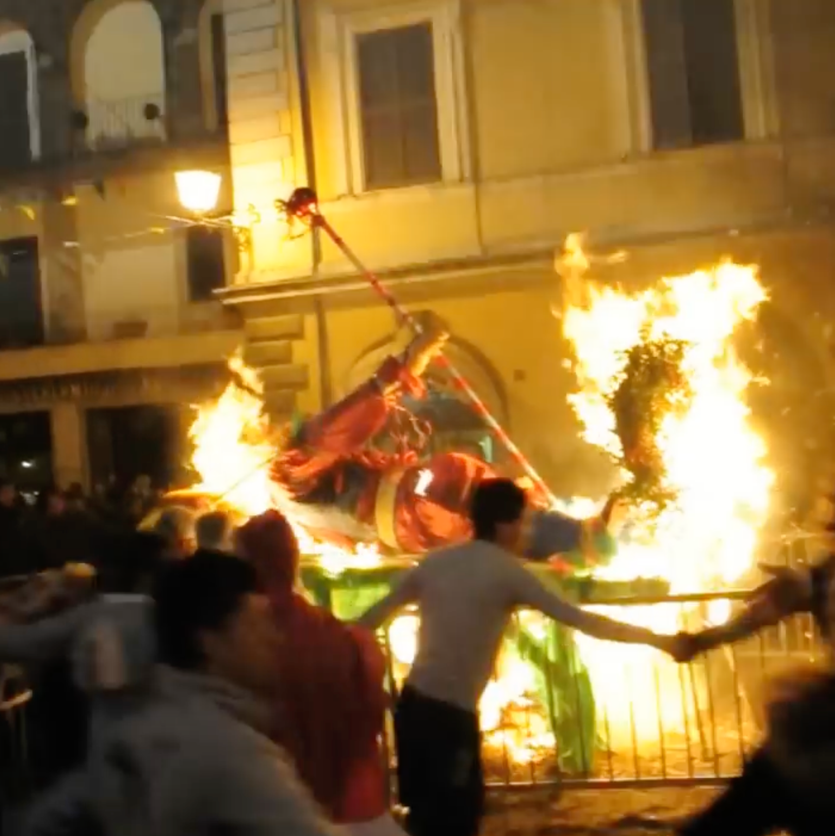 Quando il rogo si accende, la piazza si stringe attorno al fuoco e la folla si anima con il saltarello, formando una lunga catena concentrica che gira e canta. Il ritmo cresce sempre più incalzante, la piazza diventa un grande ballo: un finale condiviso, quasi liberatorio, che chiude il Carnevale e rimanda all’anno successivo.